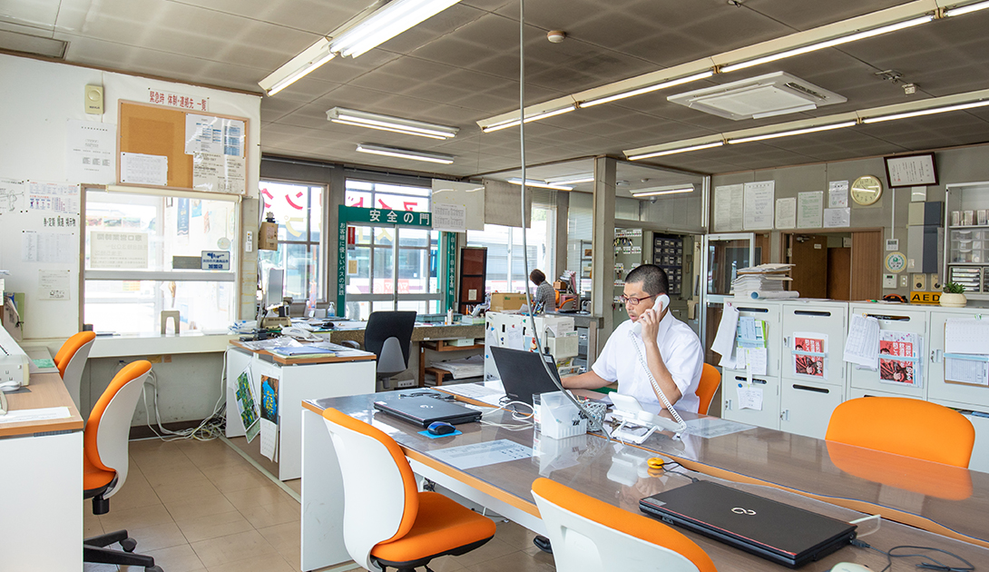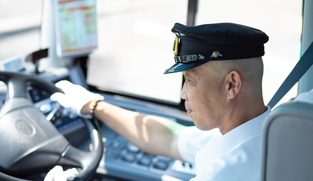 職場や学校、買い物や自宅へ。自家用車を持たない浜田市の学生や高齢者などは、石見交通の路線バスが生活の足となっている。地域の方の毎日の大切な移動手段として、同社は「やさしさ」をモットーに運行。運転はもちろん、車内事故も防ぐ高い安全性と利便性を追求する。また災害時の対応や従業員の体と心のケア、社内美化も推進。常に気持ちよく、効率よく、愛される路線バスとして今日も石見路を走る。