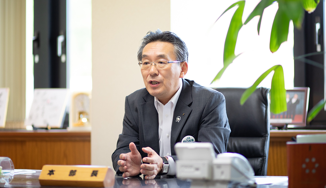 地元浜田で農家を営む組合員一人一人がよりハッピーになるために。販売、指導、金融、共済(保険)、葬祭など、地域の人の暮らしをサポートするJAしまねいわみ中央地区本部。そのサービス内容はまさに「ゆりかごから墓場まで」。大切なのは地元愛だ。浜田市民の3割と言われる組合員の活性化と地域の繁栄、人と人との温かな交流がJAの役割。『地域貢献』を合言葉に、多方面に渡る事業で浜田市を支える。