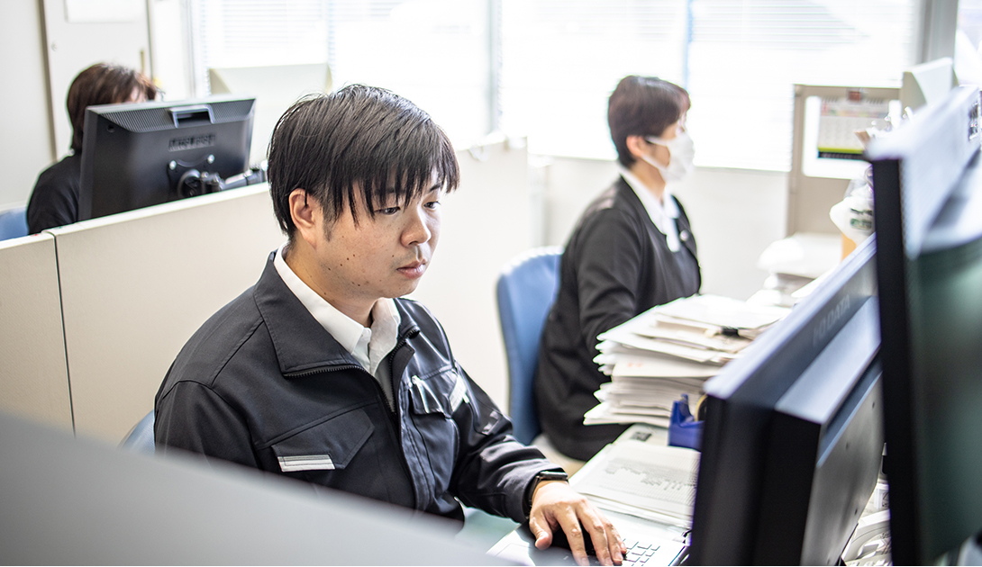 専門学校を卒業後、島根県外で勤務。数年後転職を考え「一旦地元に帰ろう」と決意した。工業分野のスキルを活かせる業界を探し、同社に就職。工程管理や調達業務を担当する。