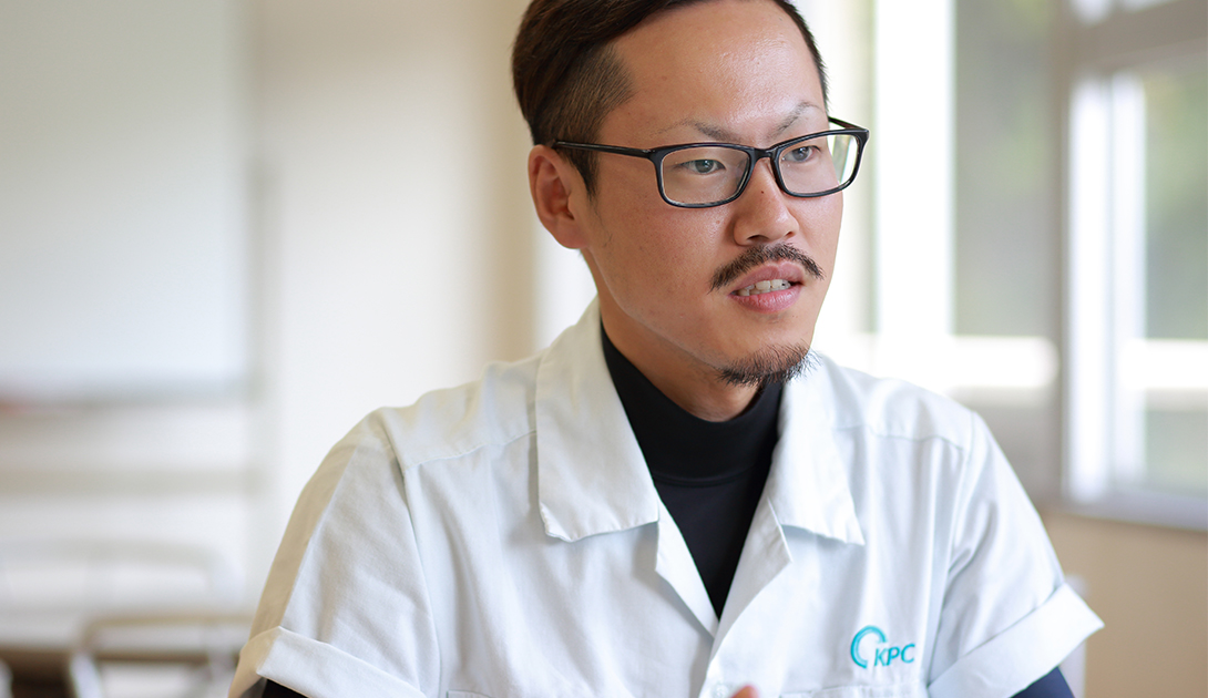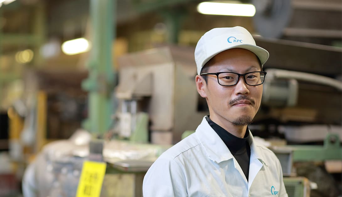 キーパー株式会社に勤務していた頃は、自動車の車軸部分に使われるオイルシールを製造していた。こうした経験と前工程作業には興味があったため、派遣期間のタイミングのいい時に、ケーピー株式会社に正社員として入社。丸2年が経った。現在は金属環の表面処理加工をする業務を行なっている。製造された金属環の表面仕上げをするために、調合した薬品に漬け込んで処理を行うのが持ち場。納期に合わせて薬品の調合や機械のオペレーションをするのが具体的な作業となる。もともとデスクワークなどは苦手で、緊張感を持って忙しく体を動かしている方が好きだという佐々江さん。
