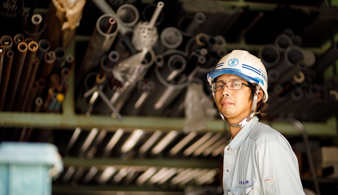 「電気系・建築系の仕事は工業高校で学べるんですが、水道工事は学校で学べないし専門学校も少ないんです。だからこの業界はほとんどみんな初心者なんですよ」と山岡さん。山岡さん自身も「ライフラインに関わる仕事がしたい」と、他業種の工場から10年ほど前に転職したひとり。最初は水道工事に関係する専門用語や道具の使い方などがわからず、その都度先輩に教えてもらっていたという。やがて入社3年目で2級技能士を取得。今では石見水泉社の若手ナンバーワンの技術者に成長した。