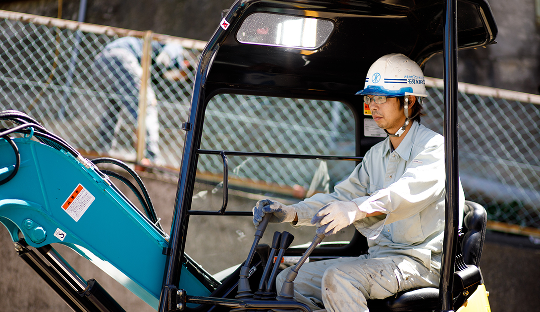 水道工事、配管工事、コンクリートの切断など、石見水泉社の工事はひと通りこなしている山岡さん。浜田の水を広く確実に供給するために、日々現場で汗を流している。「きちんとした仕事、きれいな仕事をすると多くの人に喜ばれるから」と、浜田市に貢献できるように日々技術を磨いている。