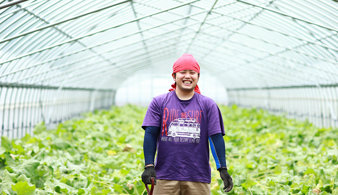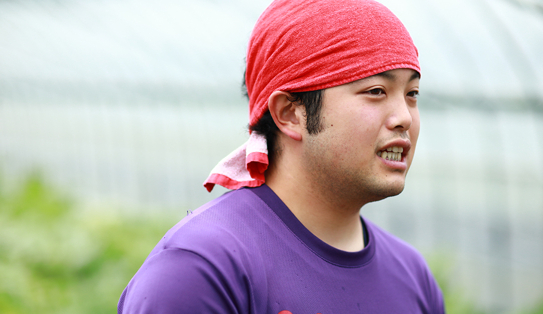 子どもの頃から兼業農家をしていた父方の実家で、草刈りや稲刈りの手伝いはしていた。そのせいか仕事を探していた時、ハローワークで「農業」という職業に反応したという。何もわからず、教えてもらうままに作業をしていた1年目。2年目はトラクターやコンバインの操縦にも慣れ、失敗の原因や周りのことなどが見えるようになってきた。そうして農業のサイクルを重ねながら経験を積み、現在入社6年目。ブドウを担当している。「ブドウの花が咲く前に、実りそうな部分を残して剪定するんですが、その見極めが最初はわからなくて」と笑顔。そうして棚に枝を誘引し、夏の終りに大粒のブドウが実り始めると、やはり嬉しいという。