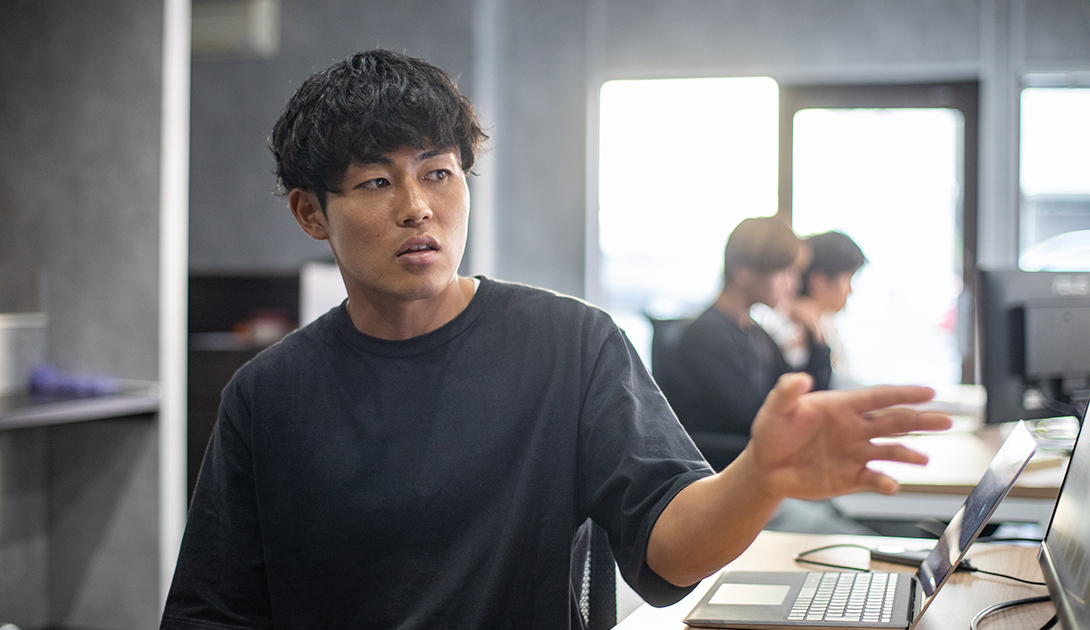 「ベルガロッソいわみ」から斡旋された職場の一つがシフトプラス株式会社だった。浜田市の地域リーグでサッカーをするのであれば、仕事でも地域貢献ができる働き方をしたいと考えていた曽根さん。この会社ならふるさと納税の業務を通して、地域に貢献できると考え、日々業務を行なっている。