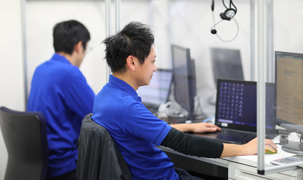 デルタ・シー・アンド・エスに入社して、10年。生産管理課を任されている勝田さん。毎日生産ラインの間を縫うように動き回り、管理業務を行う毎日だ。「部品や生地の調達が僕の仕事です」と勝田さん。自身で作業計画を作り、計画通りに生産作業を進めていくことに、最もやりがいを感じている。作業工程に合わせて必要なパーツの生地を裁断していく作業は、オペレーションシステムを使って自動で行われる。