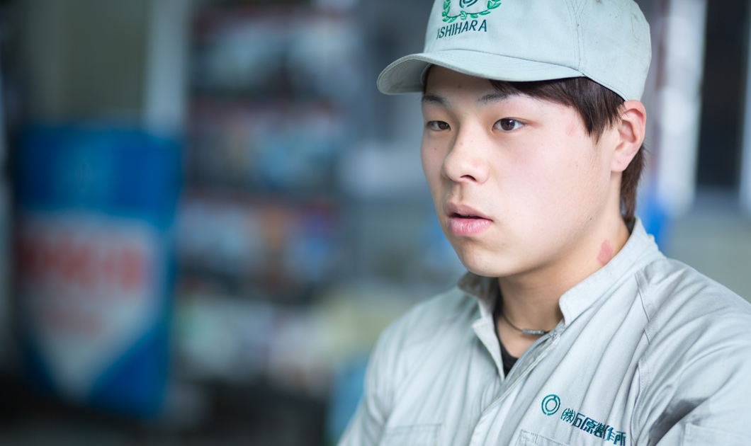 地元の水産高校を卒業後、一度は別の会社に就職するも、縁あって石原製作所に昨年入社。重機整備士として日々腕を磨く。趣味は社会人チームに所属して週3〜4回汗を流すバスケットボール。
