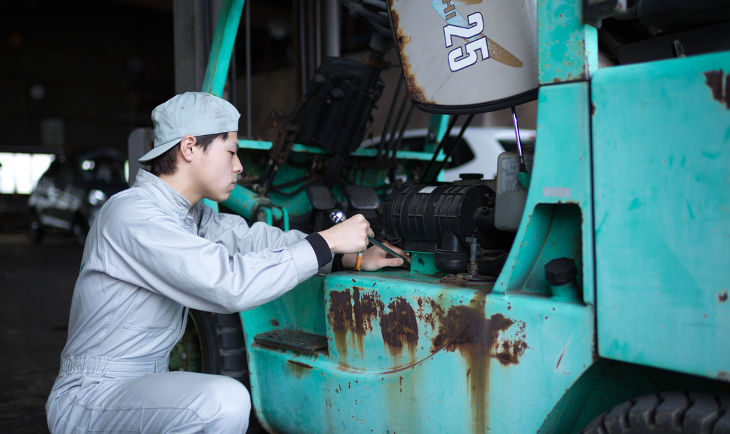 建設現場で使用されるショベルカーやクレーンといった重機を整備する、重機整備士として点検・修理を行う。大きな現場で活躍する重機の整備に興味があり、また多くの資格取得にもチャレンジし、それらを生かした仕事がしたいと石原製作所での勤務を希望した。
