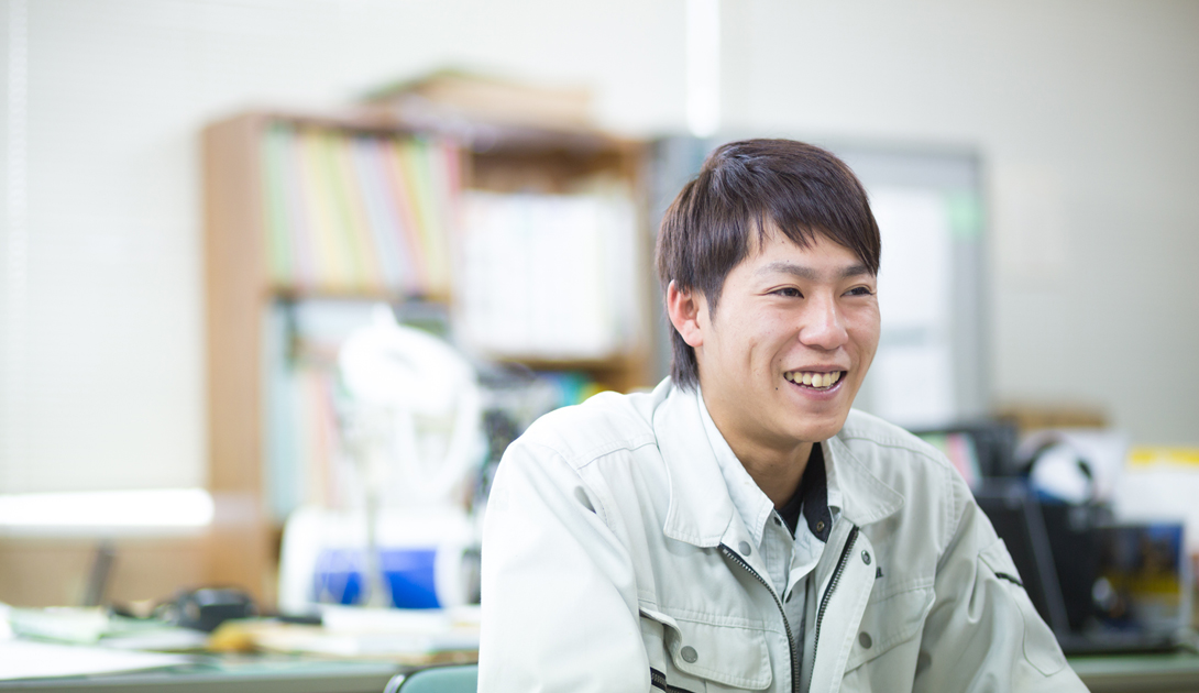 「体を動かす仕事がしたい」と岡貞組を選び入社した永田さん。岡貞組が取り組むIPH工法に関心を持ち「やってみたい」と意欲を持った。「剥がれや亀裂の入ったコンクリート構造物に対してその原因や状態を調べ、自分の手で丈夫にしていくという作業にやりがいを感じます」と永田さん。また以前IPH工法を施工した構造物を、時間を経て見に行くと全く異常が見られなかった時、改めて仕事の達成感を感じるそう。工事のエリアは島根県全般に及び、毎日が忙しく充実している。現在20歳。すでに18歳で入社した後輩の育成もスタートし、その後輩がIPH工法の技術を得て施工できるようになったことが、最近一番嬉しかったことだという。「土木の仕事とはいえ、大切なのは人とのコミュニケーション。社内だけでなく施工現場などでも意見を通わせ確認しながら仕事を進めることが大切」と話す。また「体を使う仕事が好き」と言いつつ施工内容や納期の調整など頭を使うことも多いと知り、それをこなす先輩たちは尊敬に値するよう。また明るく人懐っこいキャラクターで、社内の誰からも愛されているようだ。